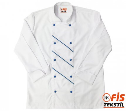Aşçı ceketi standart mavi biye aşçıların rahatı için üretilmiştir