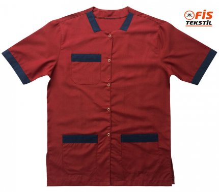 Önlük kat hizmetleri gömleği bordo özellikle oteller, hastaneler ve çok amaçlı temizlik işleri için tasarlanmıştır.Şık tasarımKolay kullanımKısa kolluGiyilebilir önlükÇıt çıtlı kapama