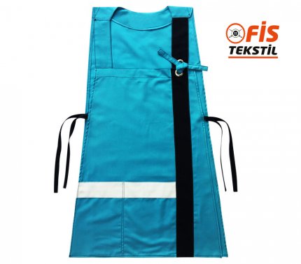 Giyilebilir önlükSol göğüste dekoratif kurdelaBoyundan askılı ve belden bağlamalıÖn bölümde iki renk dekoratif şeritlerÖnde iki cepBoyut : 32 cm (üst en), 51 cm (alt en), 82 cm (boy). Bel kemeri dahil değildir.