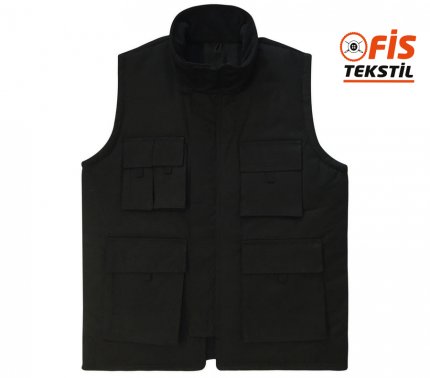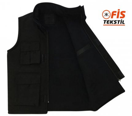 Gabardin çok cepli kışlık siyah işçi yeleği çalışma hayatını kolaylaştırmak için üretilmiştir