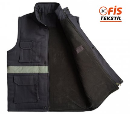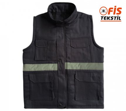 İşçi yeleği kışlık çok cepli reflektörlü gabardin koyu gri çalışma hayatını kolaylaştırmak ve iş güvenliği sağlamak için üretilmiştir